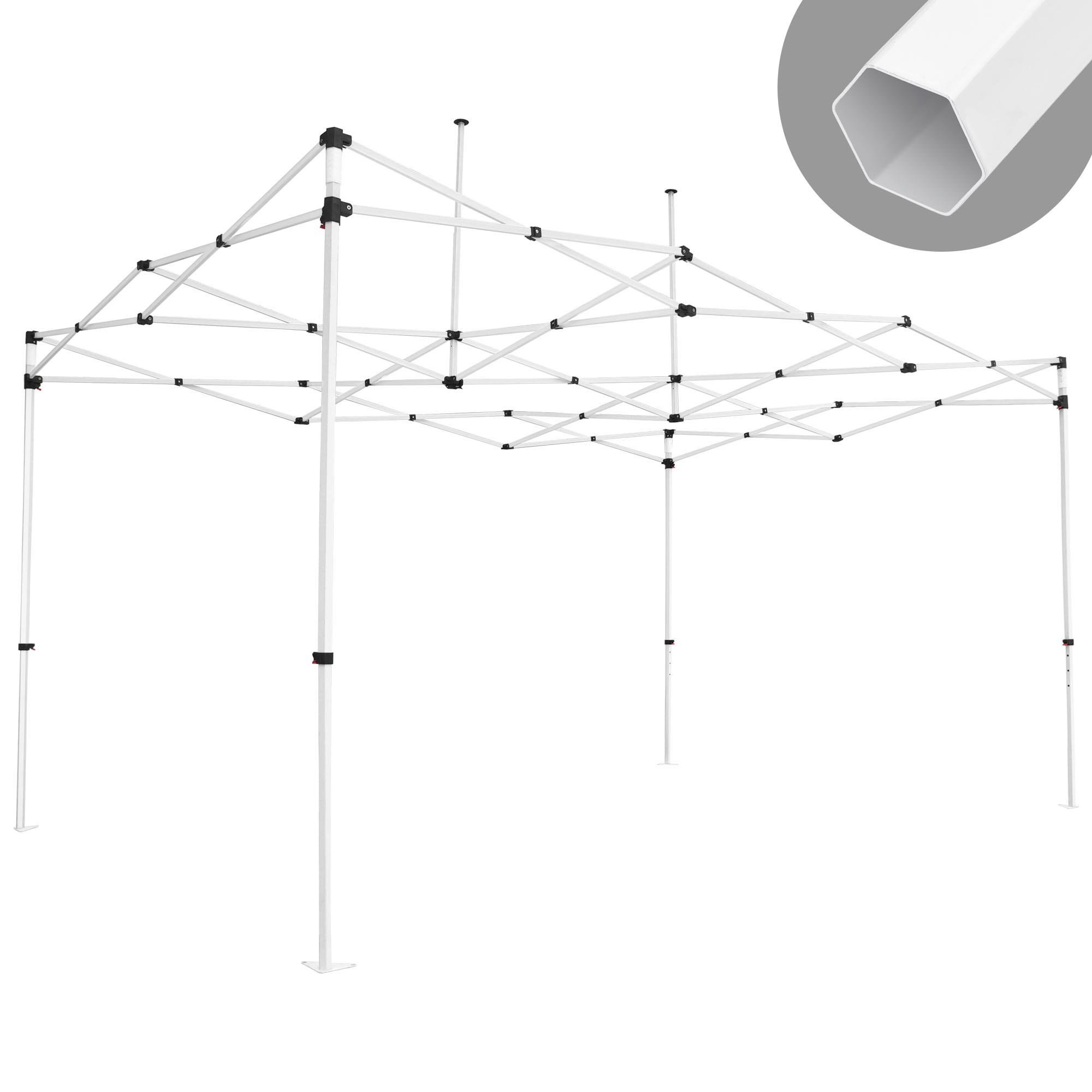 Strong support with hexagonal legs; much stronger than round poles