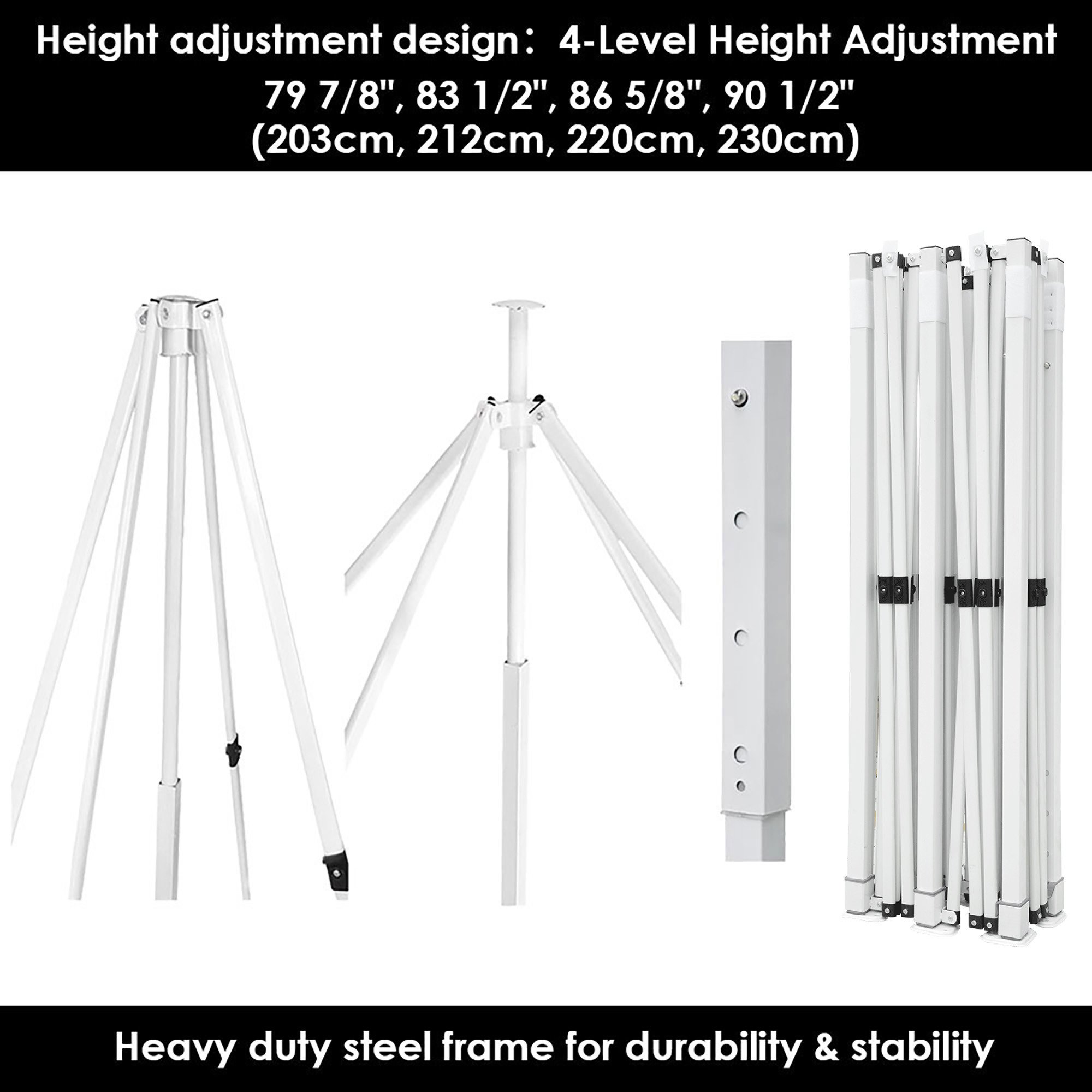 - 4-Level Height Adjustment: 79 15/16"; 83 7/16"; 86 5/8"; 90 9/16" (203cm; 212cm; 220cm; 230cm)