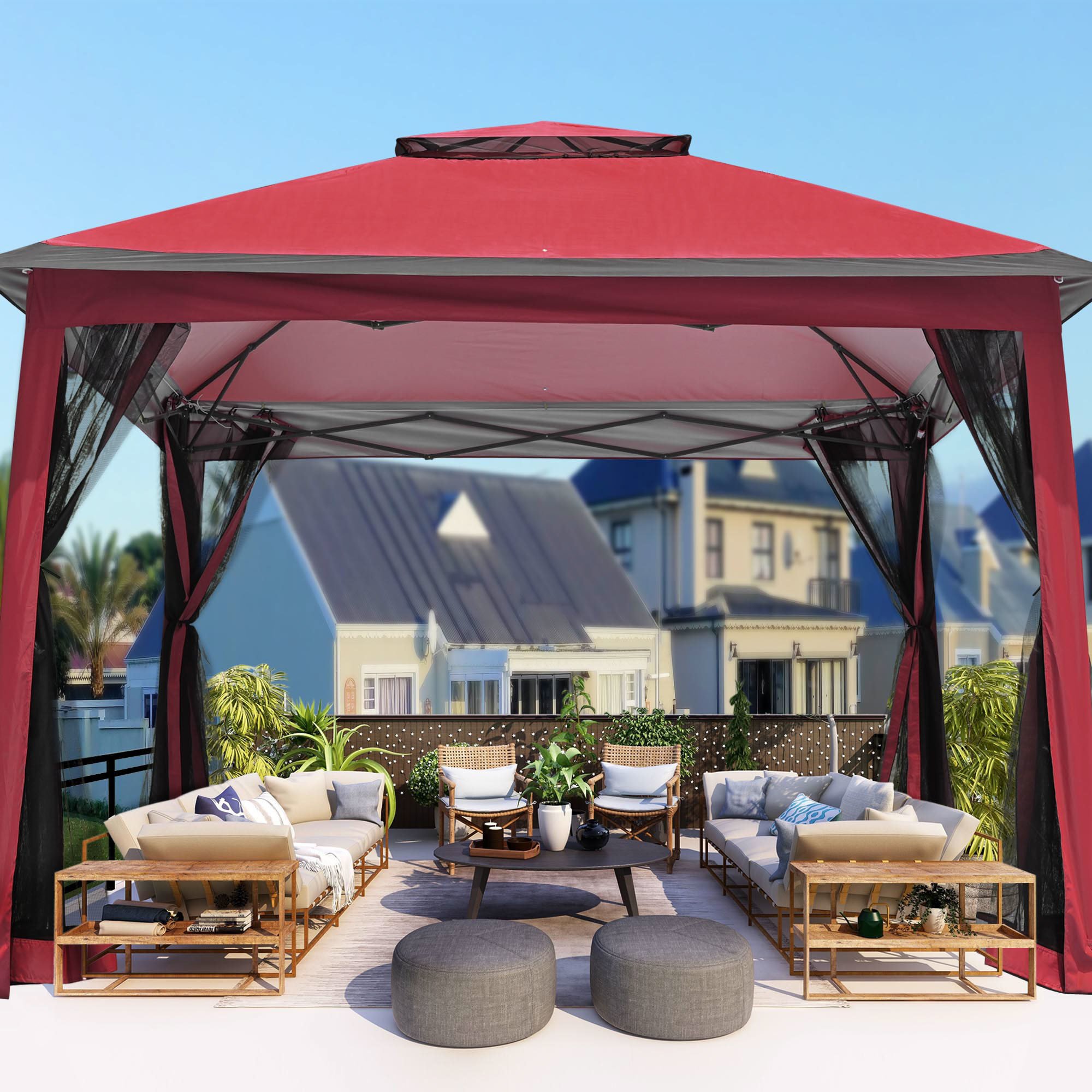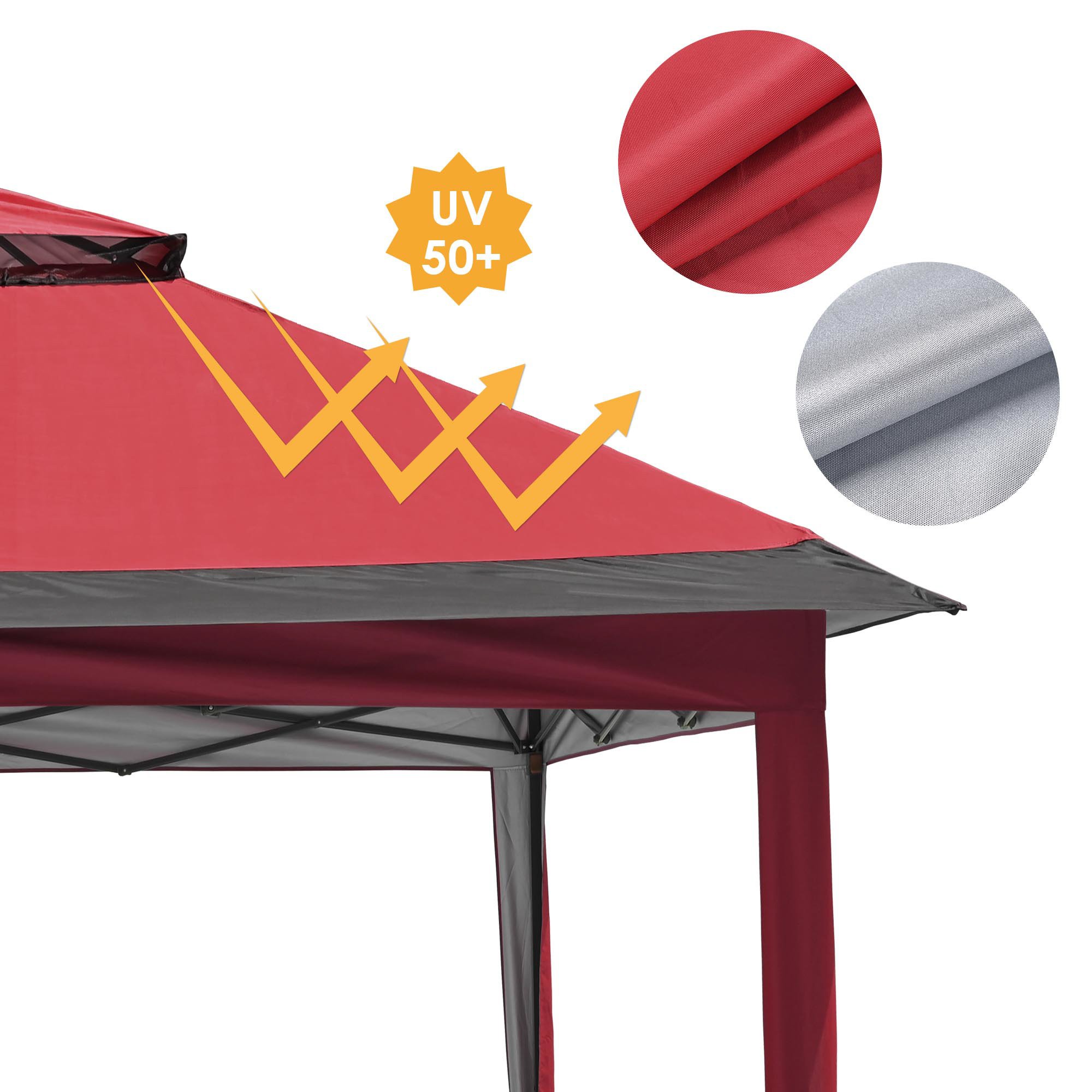 - UV50+ Durable Shelter - 10 5/6 x 10 5/6 ft Pop-Up Gazebo Tent with Mesh Sidewalls features Oxford fabric canopy to serve a long lifespan for outdoor using; interior silver coating for UV50+ protection to block 99% harmful UV ray; perfect for you to enjoy summertime without worrying scorching sun