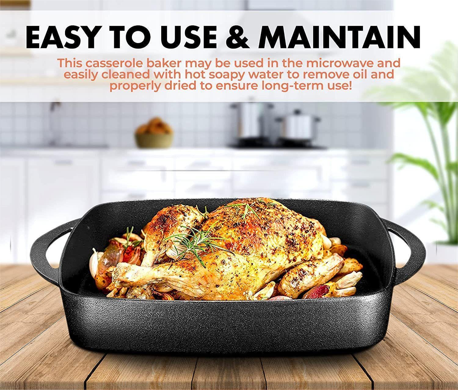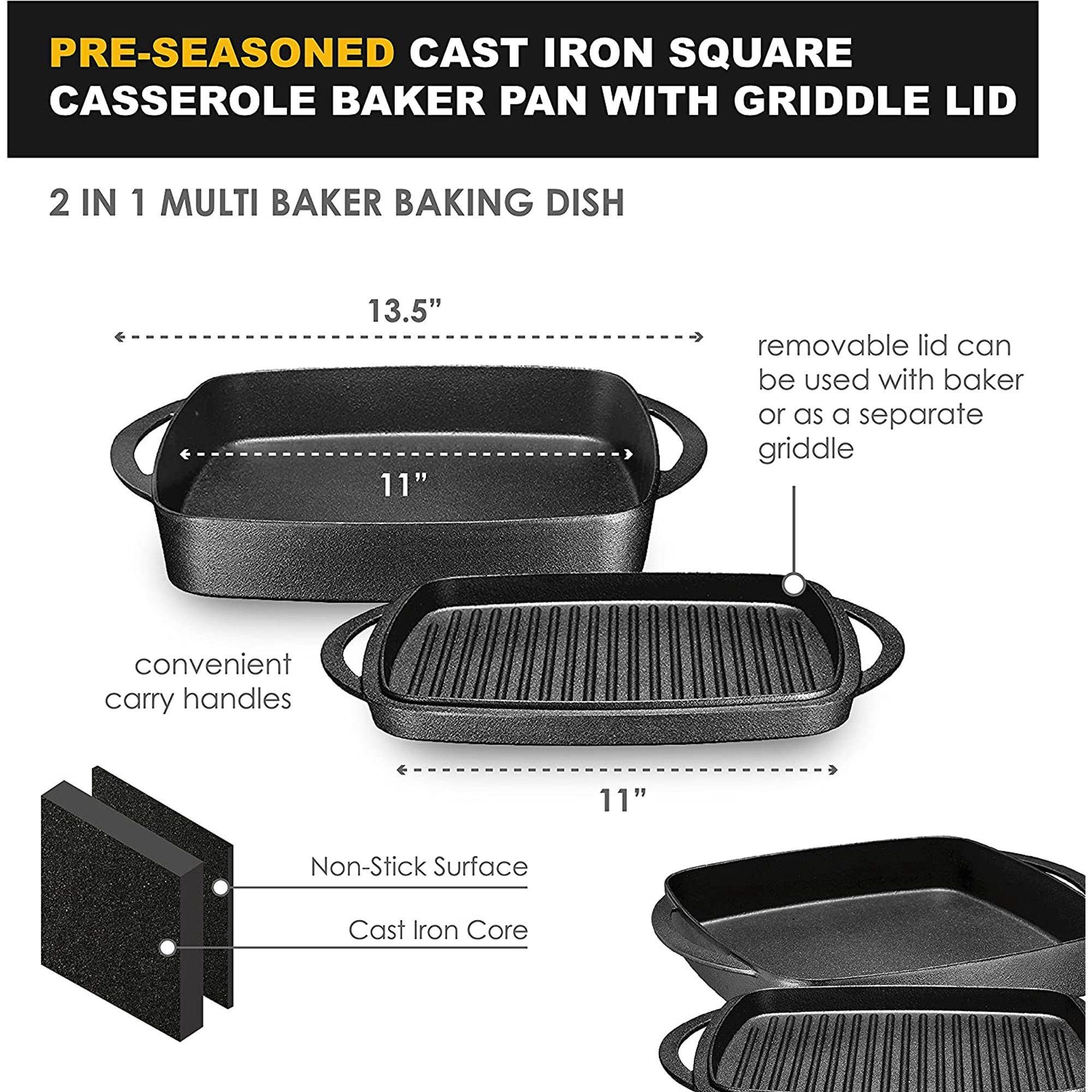2-in-1 Pre-seasoned Square Cast Iron Baking Dish Cookware Pan