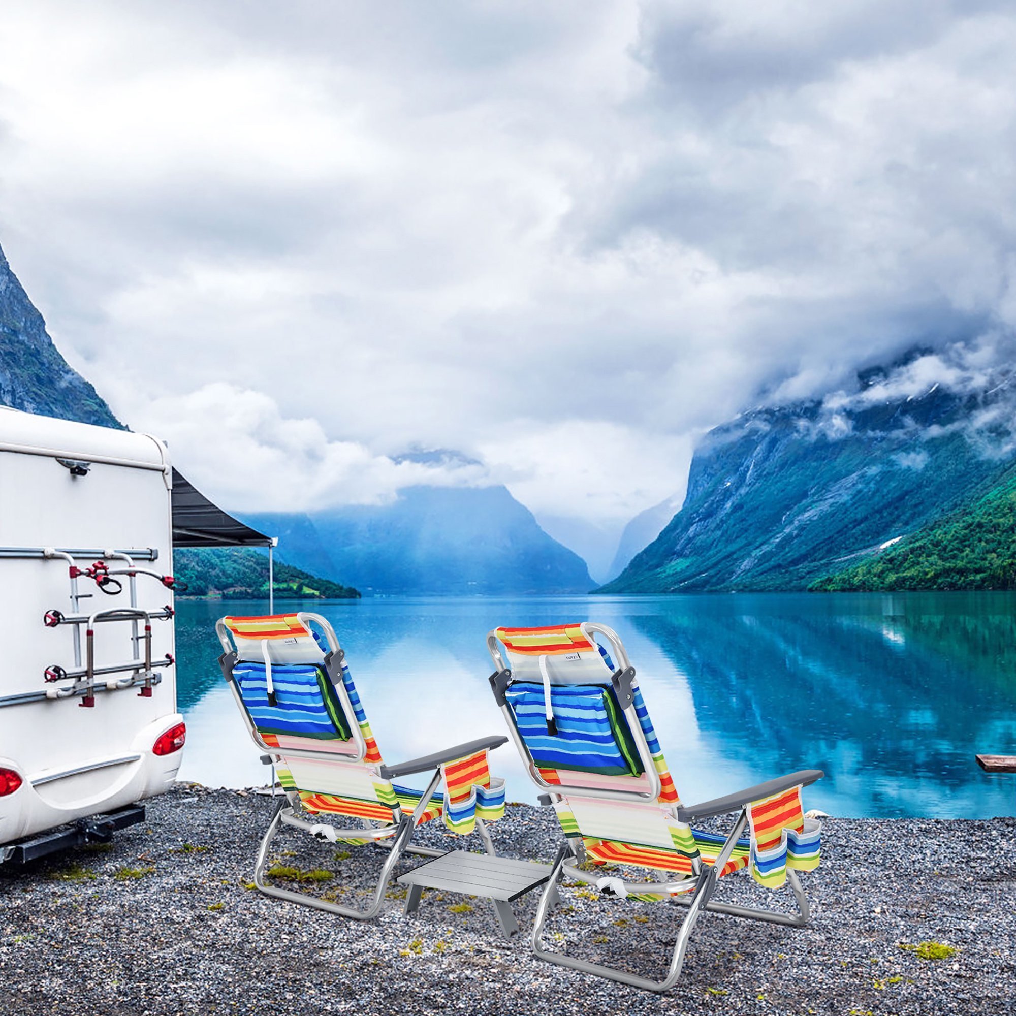2-Pack Folding Backpack Beach Chair Table Set 5-Position Outdoor Reclining Chair Yellow
