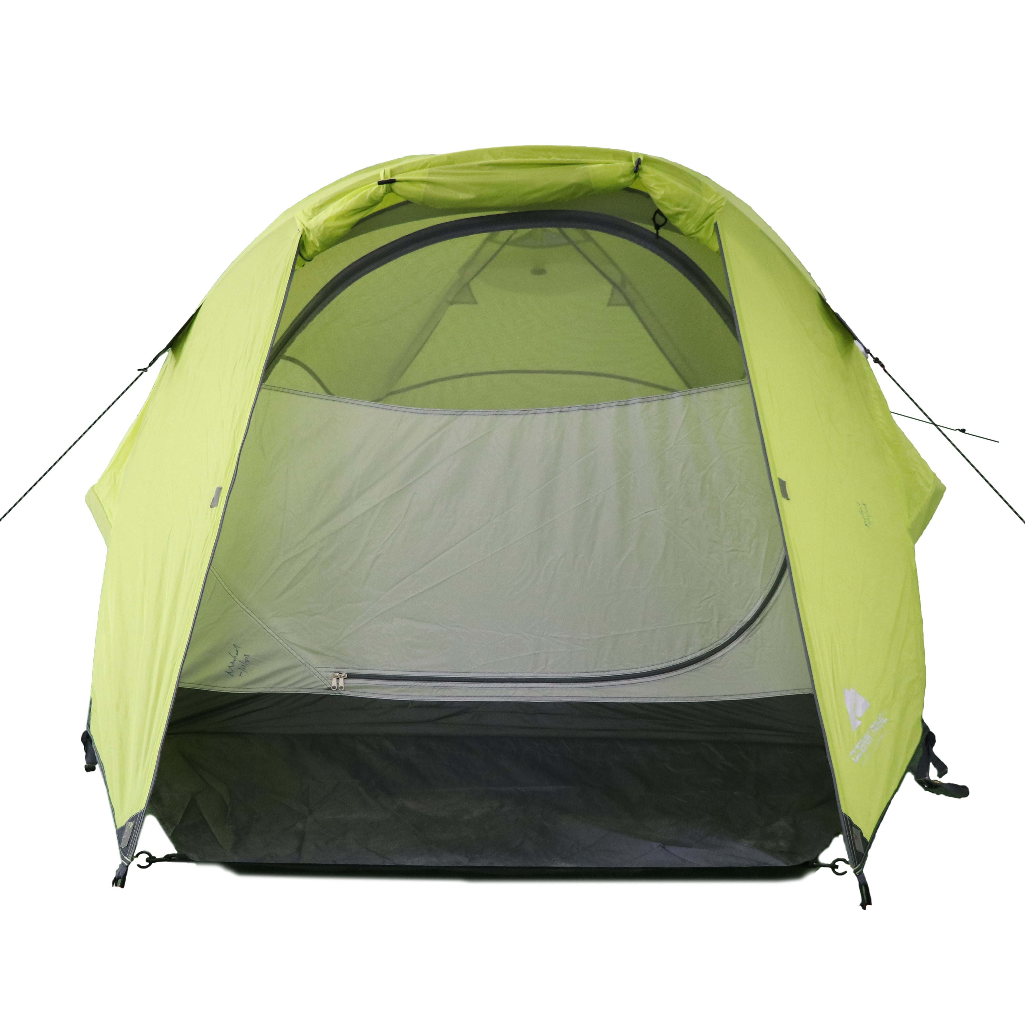 Tent is ideal for 2 campers on an overnight excursion; this lightweight and easy-to-assemble; with bright colors to make it easy to build in low light conditions. Tent is good for all 12 months of outdoor fun. The fiberglass poles and durable fabric are enhanced with a waterproof tub floor and seam-taped rain fly to keep the weather out. And for breath-ability; the mesh panoramic walls keep the airflow while keeping out all the bugs. Storage pockets in the tent help to keep you organized; so you're not fumbling through your pack in the middle of the night. The Tent gives you plenty of room to sit inside. Make camping more enjoyable with