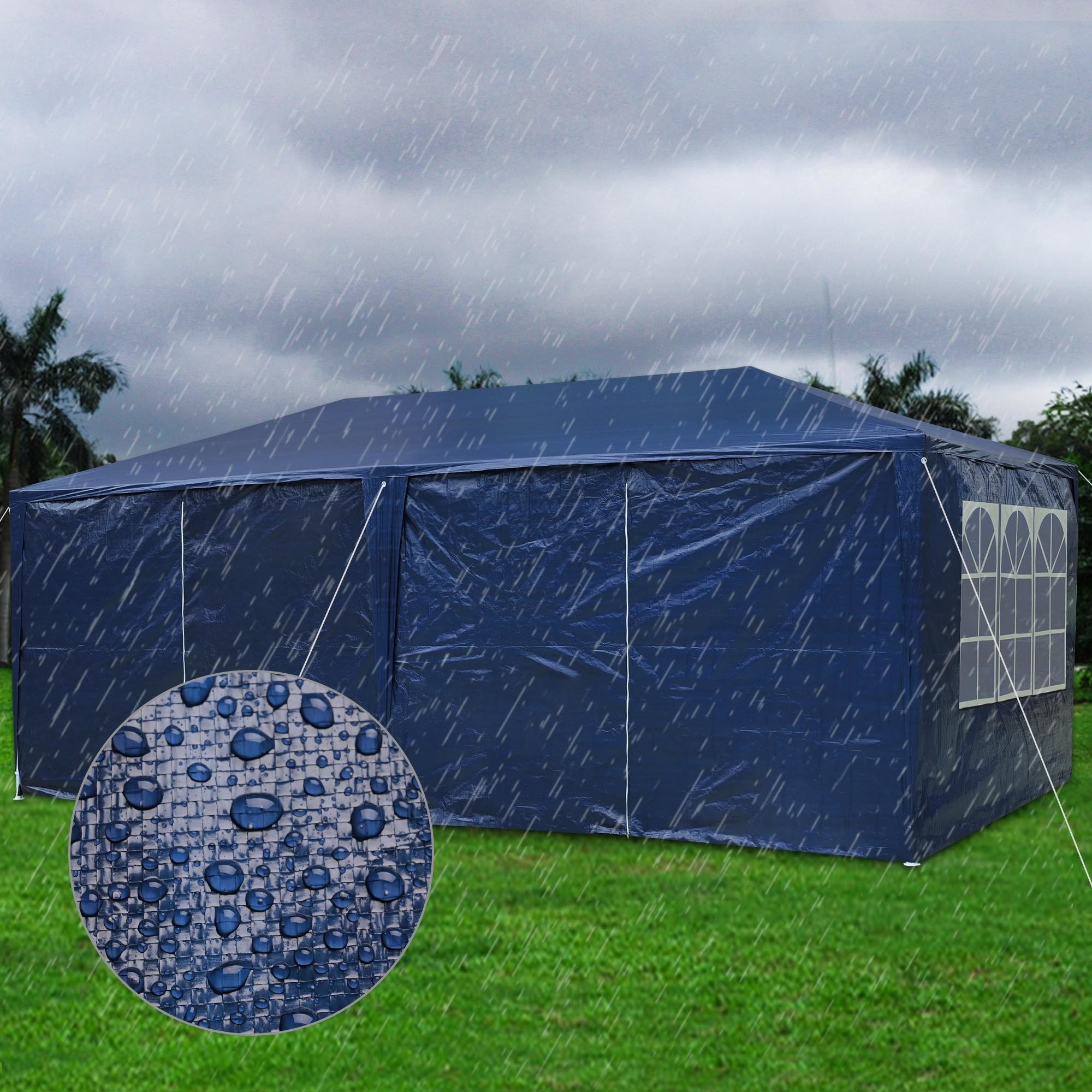 - Detachable Sidewalls - 6 sidewalls with hook & loop fastener for easy attaching and removal according to your need; 4 sidewalls with transparent church window to let in plenty of natural light & provide clear landscape views; zipper door for easy access & good ventilation on hot days - Easy to Assemble & Store - No tools required for easy assembly and disassembly; Lightweight tubes can be completely detached and conveniently stored into your car truck - Durable Material - Tent roof & sidewalls are made of water-resistant & UV-resistant PE; ideal for outdoor use; Metal frame with rust-resistant powder coating for durability; Corner joints and baseboards made of brand-new PE won't get brittle easily for long lifespan - Ground Stakes for Stability - Extra straight fittings for stably securing the connection between tubes; Baseboard with holes for inserting stakes to ensure stability when using on the lawn; can use with sand bags (not included) to add extra stability; To prolong the service life; we do not recommend to use the tent when there is a strong wind or under bad weather