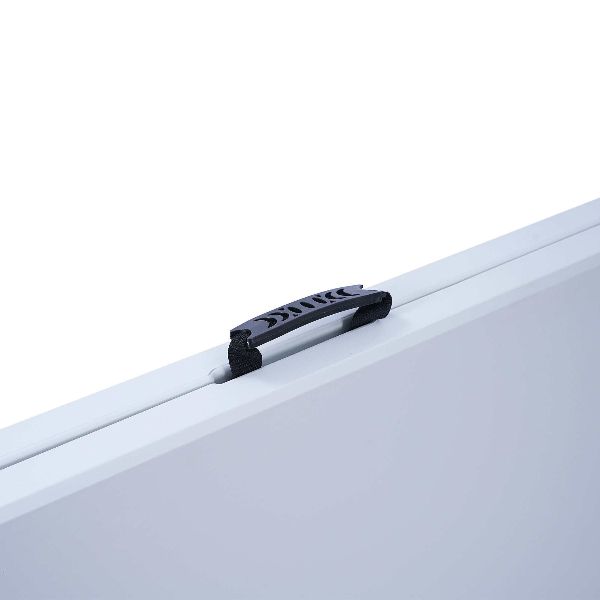 1.Heavy Duty Table Top Material: This folding table top is made of premium HDPE material, the quality material makes the tabletop stronger and less likely to scratch and dent, also it is waterproof. The soft beveled radius edge is also designed for comfort, making it ideal for indoor or outdoor use.