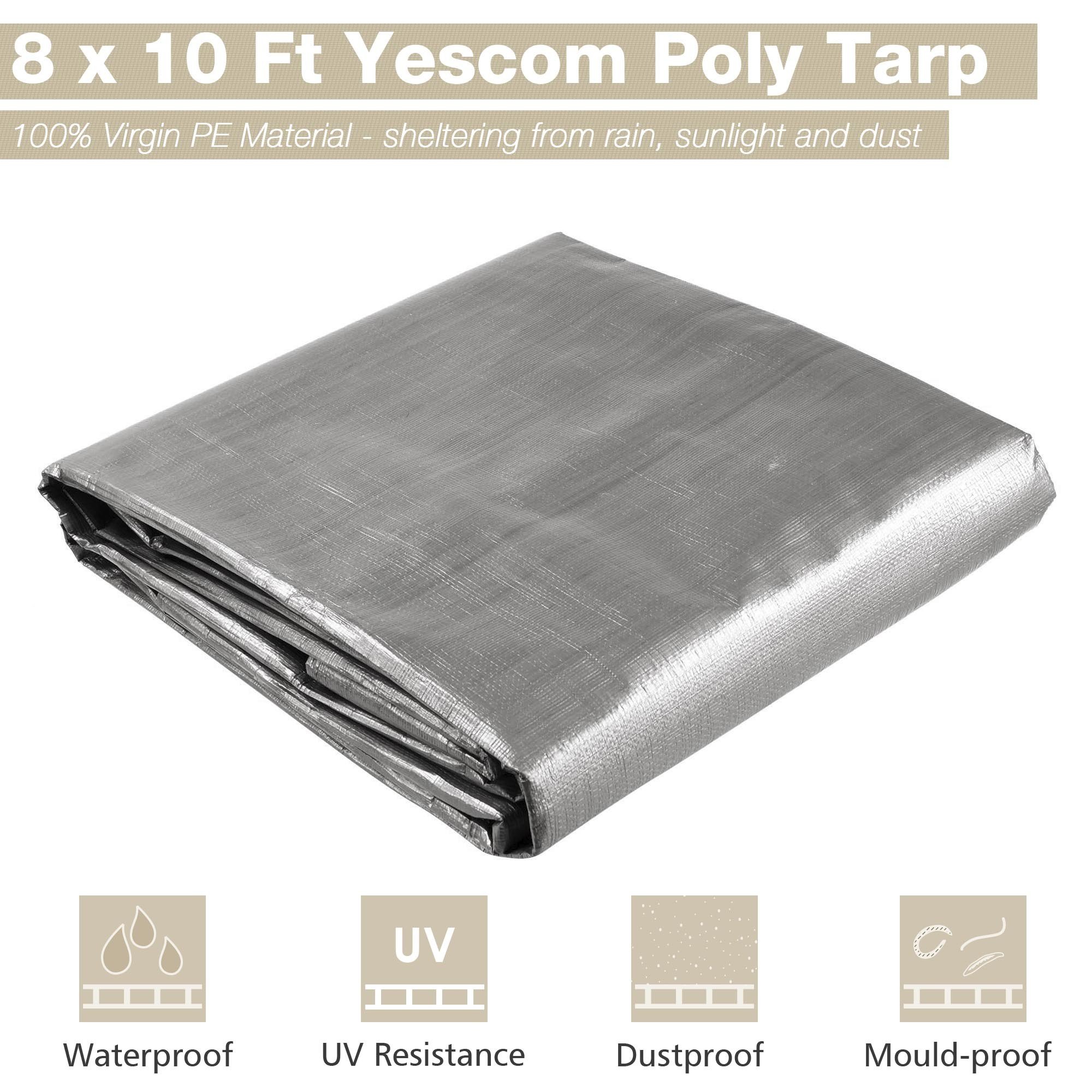 - Strong & Durable Shelter - 8 x 10 ft silver and black poly tarp forms a strong and durable shelter from sunlight; rain and dust; cooler underneath in the summer; Long lifetime up to 3 years; it features good ability of anti-aging for long-time use