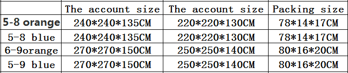 S : 240 * 240 * 135cm [5-8 people tent]