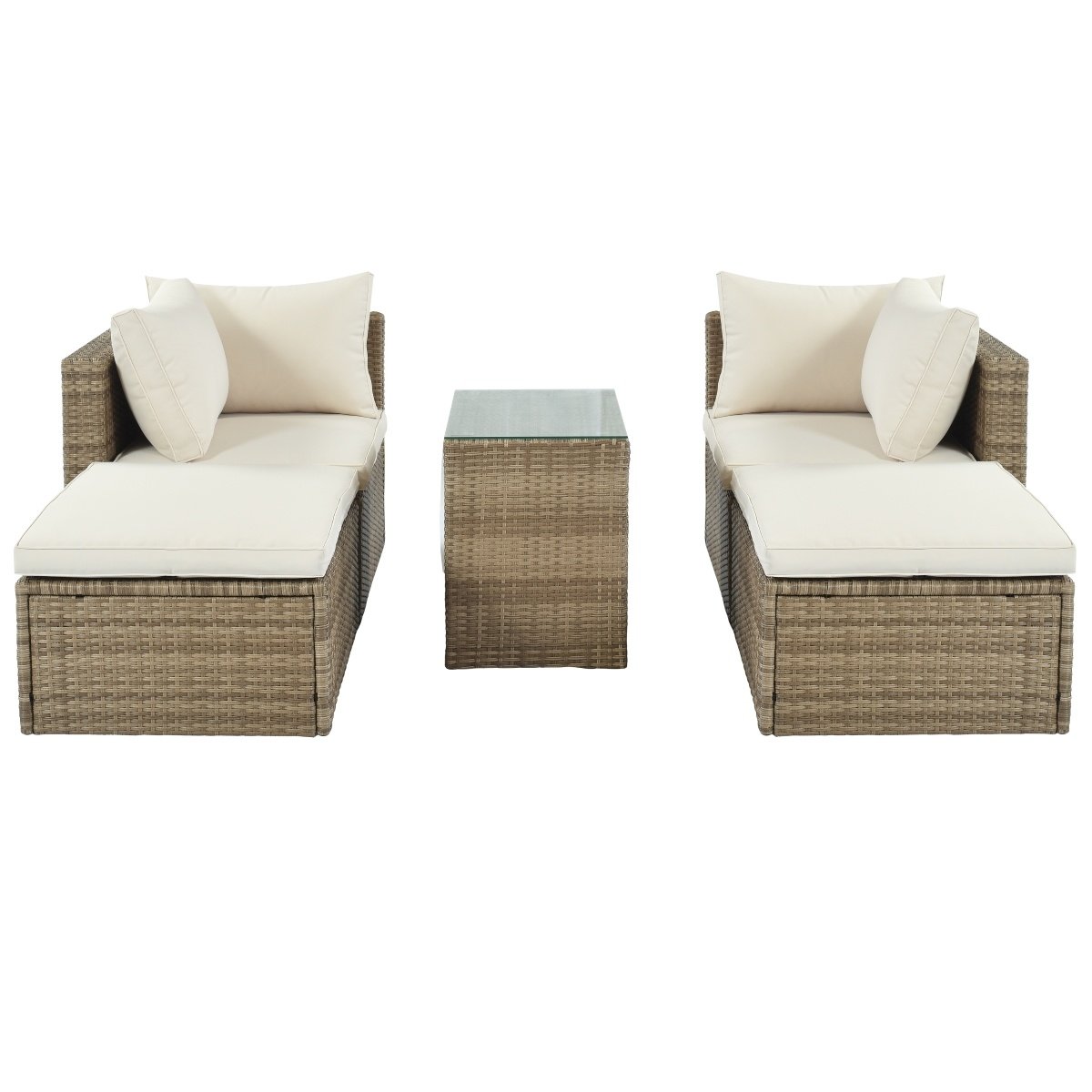 Home > Backyard Pool Outdoor Furmiture 5-Piece Rattan Sectional Sofa Set