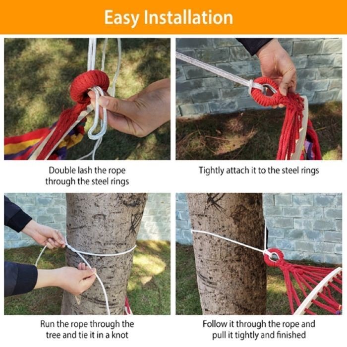 Easy Installation: Equipped with 2 premium ropes and with two sturdy steel rings at the hammock ends; the hammock can be hung from a hammock stand or two trees within minutes; and you can lie back and listen to music for relaxing.