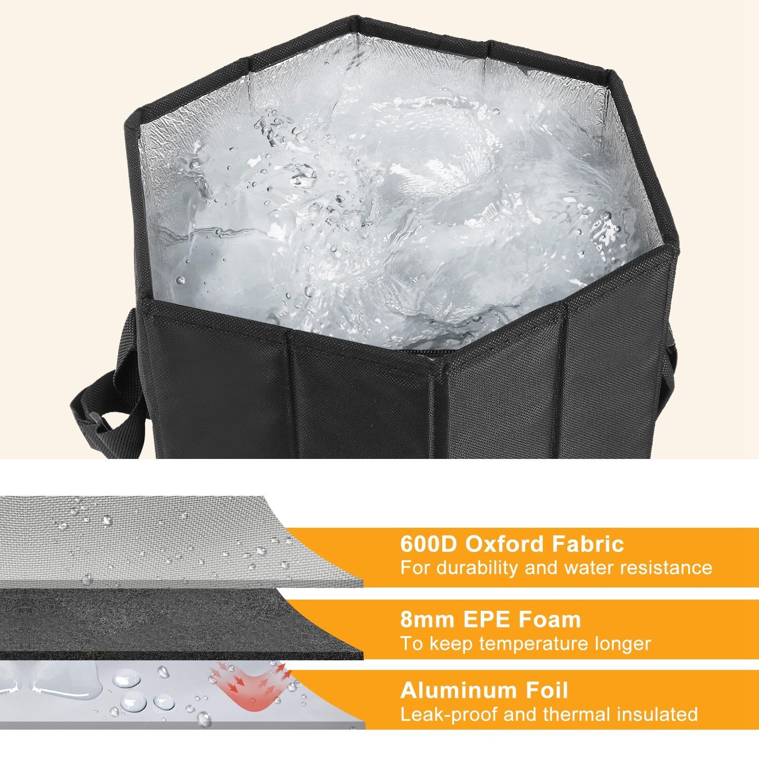 *LEAK-PROOF & INSULATED*:Food grade safety PVC materials lining and PE foam insulation prevent leaks while maintaining foods at optimal temperatures. Heavy insulated walls allowed our cooler bag to keep your freezer and cooler items cold for hours.