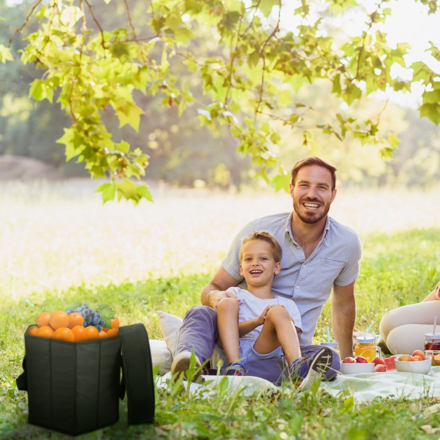 Collapsible Grocery Cooler Bag 3 Gallon Insulated Food Container Seat Combo for Camping Picnic Shopping