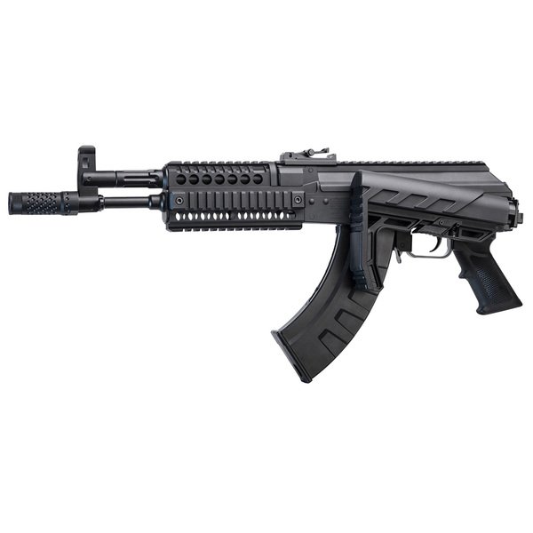 Tactical, Full/Semi-Auto BB AK1 Rifle 177 BB Caliber Caliber: BB Blowback Action 28 round, drop out magazine with CO2 housing Velocity up to 430 fps - Over 1400 Rounds Per Minute Smooth Steel Barrel Realistic Weight and Functions Adjustable and Foldable Buttstock With Quad Mounting Rail System Platform Compatible Stock Tube and Pistol Grip Removable/Adjustable Rear Sight Requires (2) 12gr. CO2 Cartridges (NOT Included)