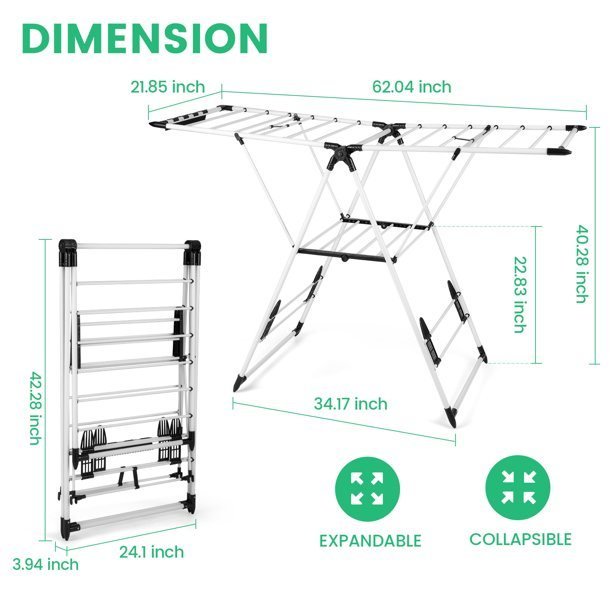 1.We designed the drying rack with 2 tiers of drying space, providing you with enough space to dry different items. Plus, each tier is perfect for pillows, comforters, towels, or shoes. Ample drying space can meet all your daily needs.