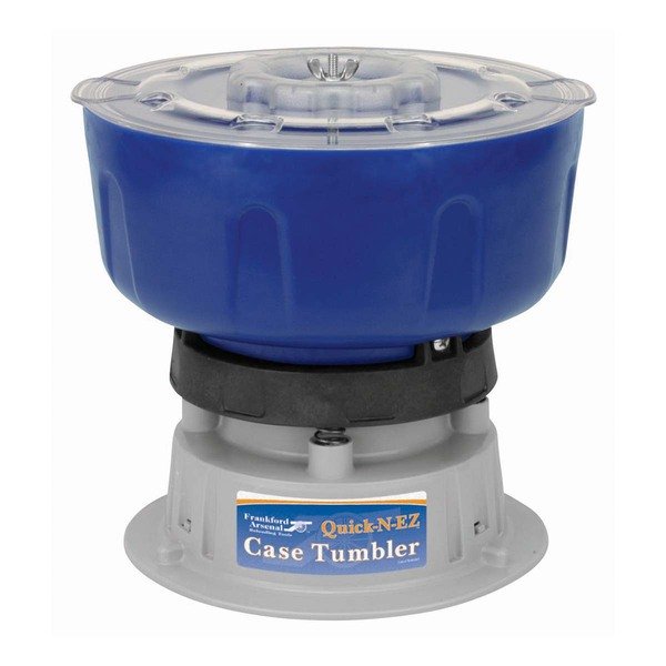 Cleans brass for reloading quickly and easily Can be used with walnut or corn-cob media Holds up to 600 9mm or 350 .223 cases Frankford Arsenal's Quick-N-EZ Case Tumbler makes cleaning brass for reloading a breeze. When used with walnut or corn-cob media (not included), it easily removes fouling, lube and oxidation. Holds up to 600 9mm or 350 .223 cases. Requires 110-volt electrical outlet.