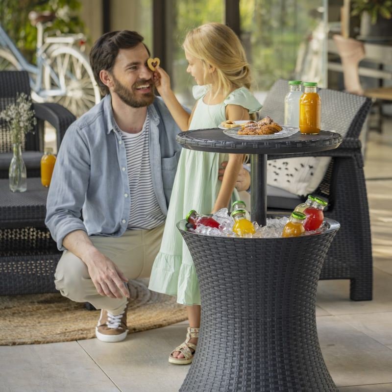VERSATILE USE: When not being used as a party bar, shut the top and use as a patio coffee table. When elevated, it is the ideal height for use as a hot tub table so you will always have a spot for your drink, snacks, and phone.