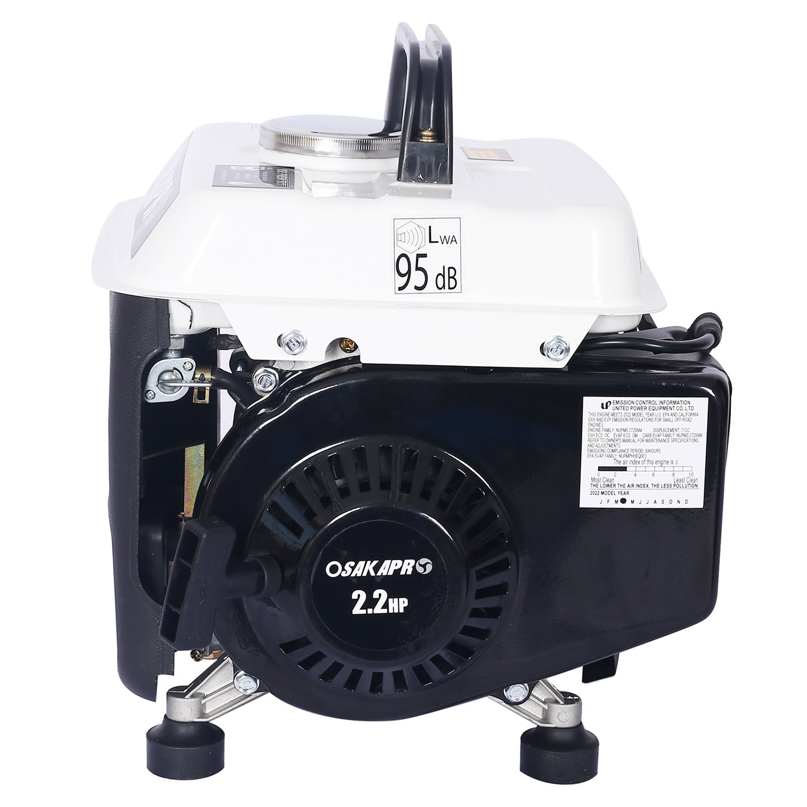 Powerful 71cc 2-stroke gasoline engine; strong reliability; with a full fuel tank of 1.1 gallonRuns smooth and quiet for up to 5 hours of safe continuous operation at 50% fuel loadBuilt-in remote reset circuit protection prevents against overheating and circuit damageIdeal use for household appliances; electric tools; perfect for camping; tailgating; or anywhere else you need portable power. EPA Compliant enviroment friendly for outdoor and indoor applicationsSpecifications:EPA III and CARB Compliant Type: Power GeneratorEngine: 71CC Air-Cooled OHV Gas Engine (2-Stroke)Engine Run Time: 5 Hrs/50% LoadRated Horsepower: 2.2 HPPower Type: Gas & Oil MixVolt/Frequency: 120V/60HzDC Output 12V 8.3APeak Power: 900-WattRated Power: 800-WattFuel Tank Capacity: 4.2 L (1.1 Gal.)Gasoline to Oil Ratio: 50:1Sound Level: 95 dBStarter Type: RecoilCertification: EPA ApprovedPackage Content:71CC Gasoline Power GeneratorSpark Plug Wrench ToolDC Charging CableAttach-on HandleManual