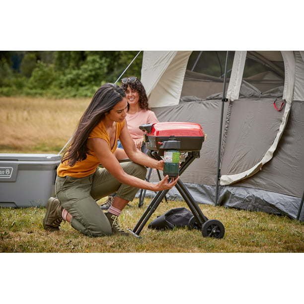 The Portable Sportster 1-Burner Propane Grill with 11; 000 BTUs; Red has a wheeled stand that makes it easy to move and position. The lift and lock system also allows you to securely set it up. In addition; it features an insta-start ignition and removable tray that collects the grease while you cook. This portable propane grill has a spacious grilling area to prepare your favorite meals at a tailgate party; picnic; camping trip or just in the backyard with family and friends. The grate is simple to remove; making clean up a breeze when you are done. When cooking is over; simply latch the lid; collapse the legs and you can be on your way to your next adventure. This Portable Coleman Sport Roadtrip Propane Grill with 225 square inches of grilling surface is durable and sturdy; making it an ideal addition to your cooking accessories and will be your go-to grill when preparing your next meal for the whole family.Product details: