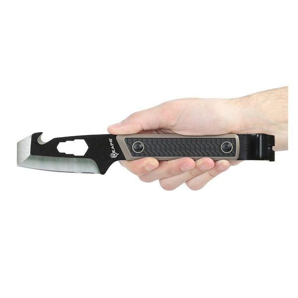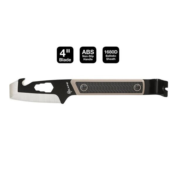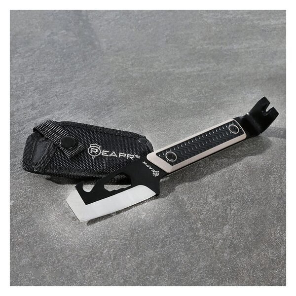 When you're in a jam, the REAPR 11015 Versa TAC Pry Bar provides all the tools you need in one hand. Its 4"e; head features options designed to get you out of a tight spot. There's a ripper hook, wrench function and nail pullers, plus a cutting edge to pry or cut. When life calls for a tactical response, take it on with REAPR by Sheffield. 420 Stainless Steel with Powder Coat Wrinkle Finish 4"e; Head Features Ripper Hook, Wrench Function and Nail Pullers, Cutting Edge for Prying and Cutting Overall Length: 10"e; (4 mm Thick) Non-Slip Molded Handle Tough 1680D Ballistic Nylon Belt Sheath